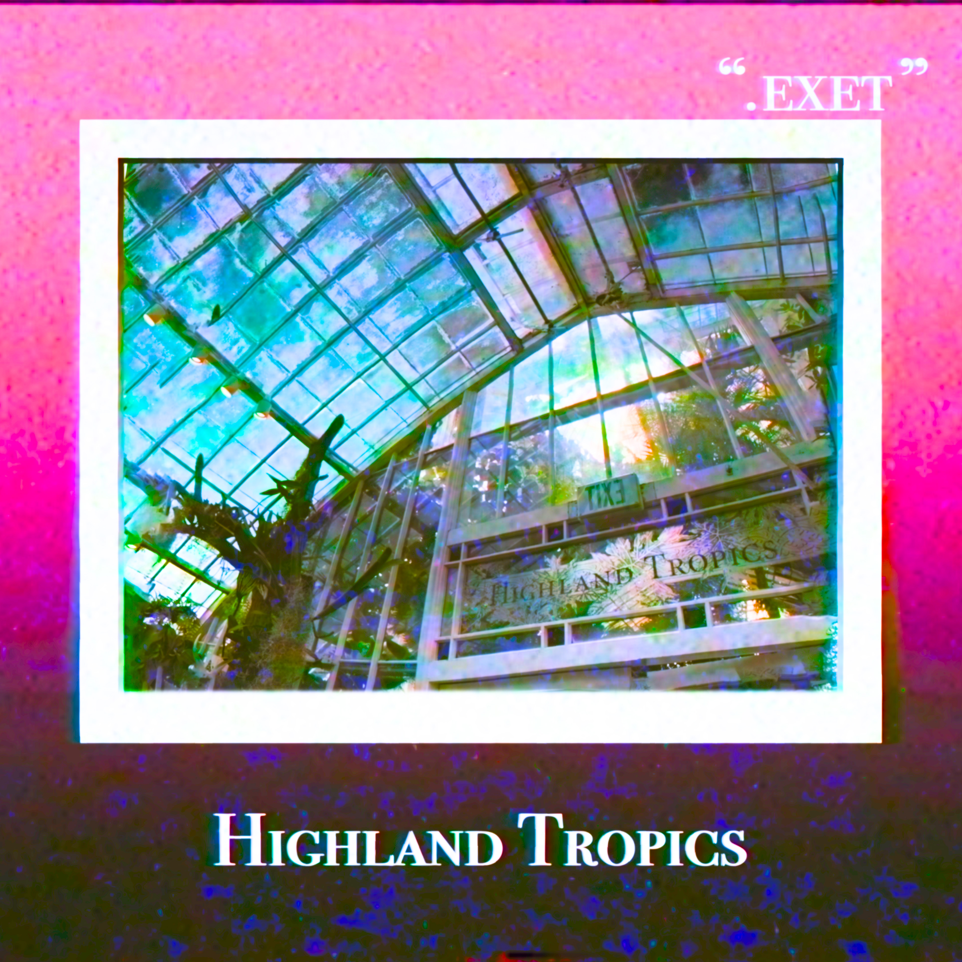 The cover is designed as a retro powerpoint slide featuring an image of the Highland Tropics room in the Conservatory of Flowers in San Francisco.