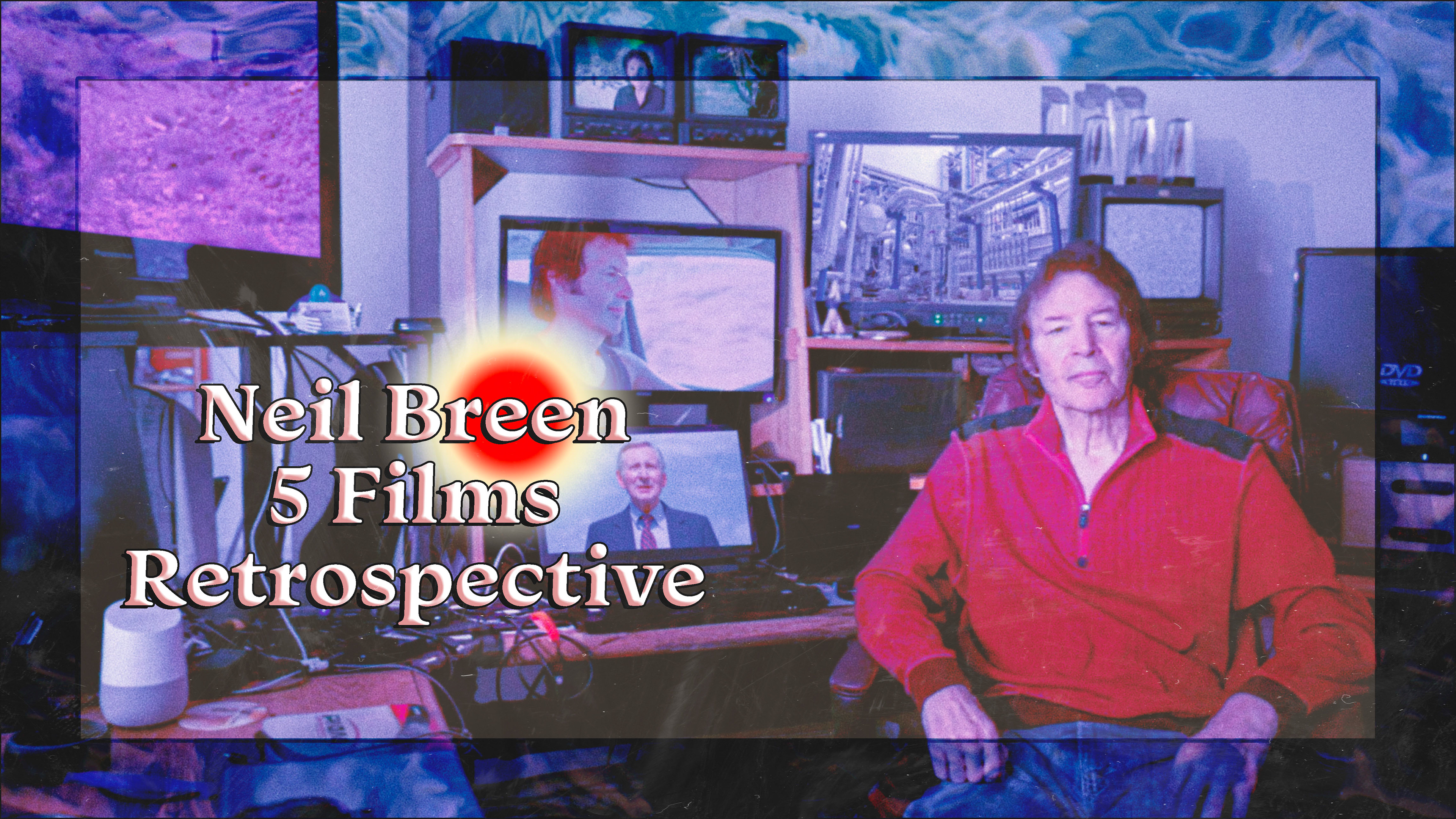 Neil Breen 5 Films Retrospective 5 Hour 40 Minute ASMR [The Non-Corrupt Version] is an ambient video I made featuring scenes from Neil Breen's entire filmography, including his 5 Film Retrospective, a $160 2-part DVD in which Neil Breen explains his filmmaking process. Much of the video takes place in Breen's editing bay. I looped a particularly long pause in the video and composited several of my other Breen videos over all the monitors in the frame. The entire piece lasts five hours and forty minutes and contains ambient computer sounds as well as low-volume snippets from Breen's movies.