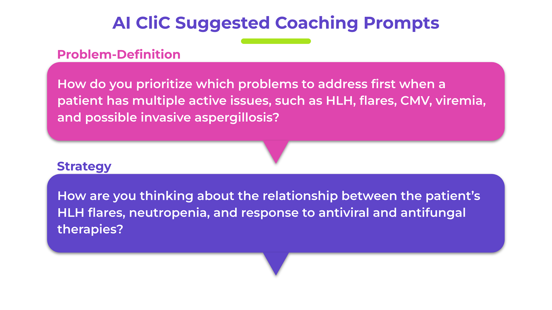 Example coaching questions generated by AI Clinical Coach.