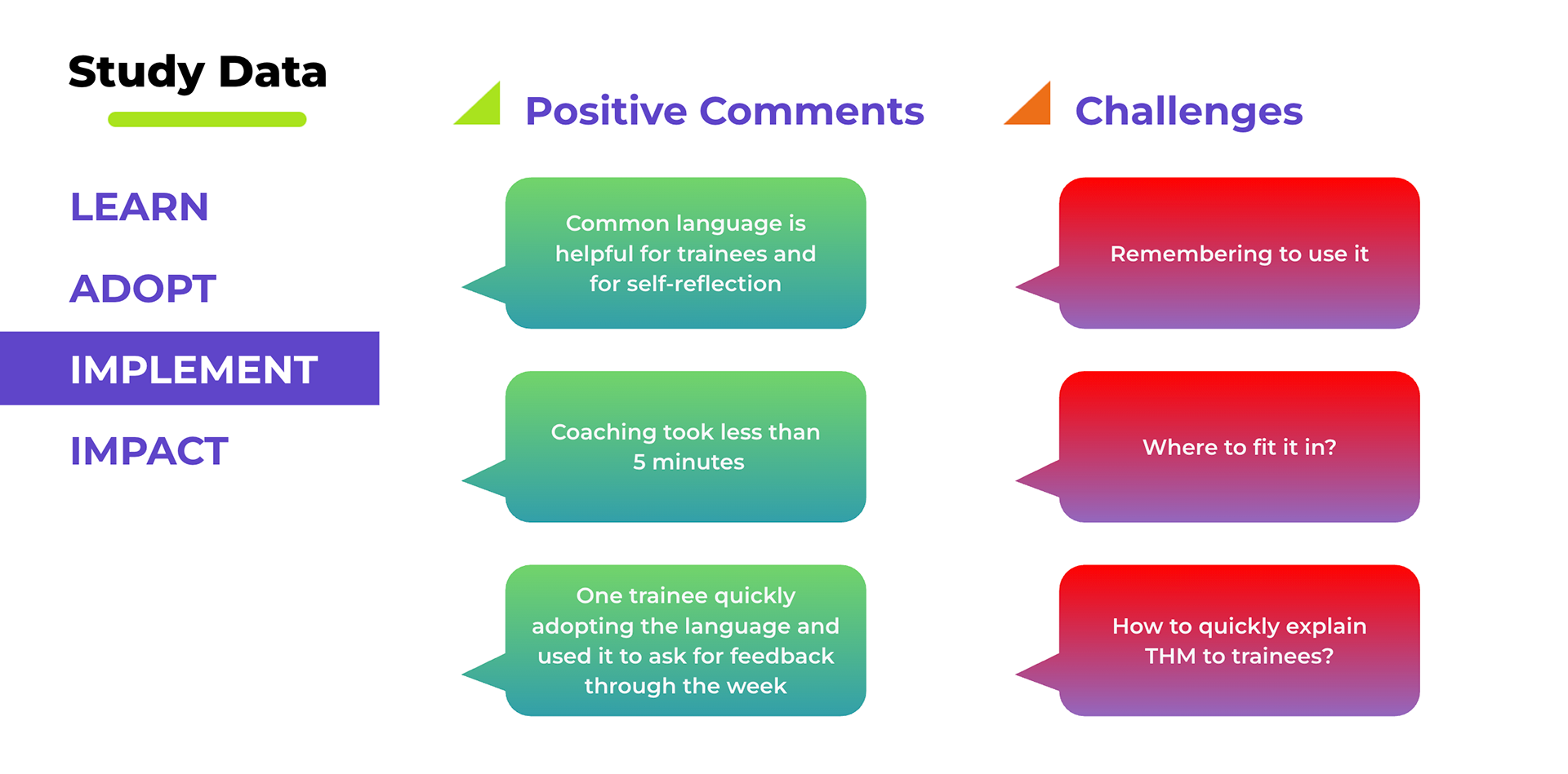 The biggest challenge we encountered was structural: every attending had difficulty simply remembering to use the application during their work, citing existing cognitive overload as the main factor. Our most frequent users adopted the strategy of using the application at the end of the service week or in the evenings as a personal coaching tool.